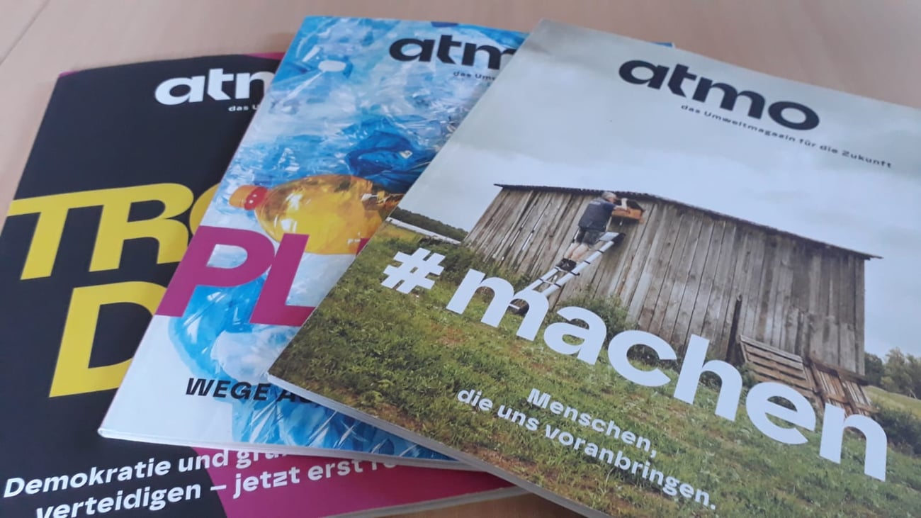 Kennen Sie schon atmo? Das ist ein ein junges, unabhängiges Umweltmagazin mit dem Fokus auf Umwelt, Klima, Natur, Frieden und Gerechtigkeit. Spannende Inhalte und hochwertige Gestaltung: Die Geschichten der Zeitschrift wollen nachhaken, aufklären, inspirieren und zu Engagement ermuntern. Denn die Redaktion sieht den Schutz unserer Lebensgrundlagen als Thema, das in alle Bereiche von Politik, Wirtschaft und Alltag hineinwirkt.