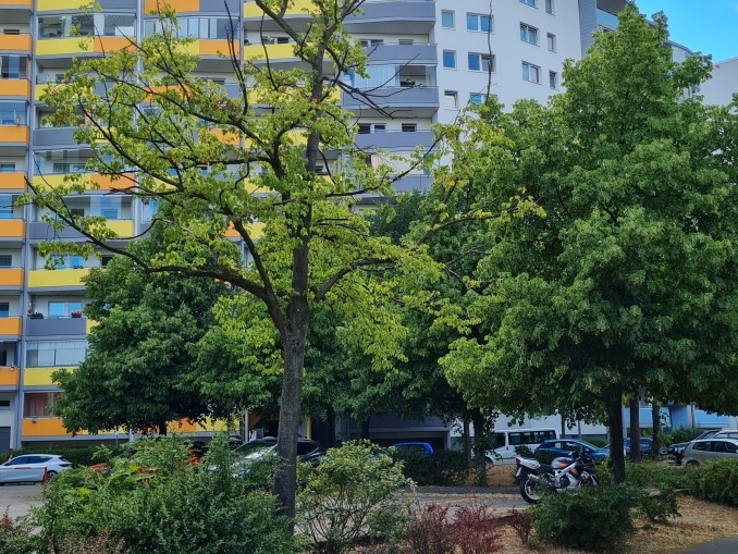 Die Trockenheit hinterlässt erste Spuren am Straßenbaum (© Naturschutz Berlin-Malchow) |