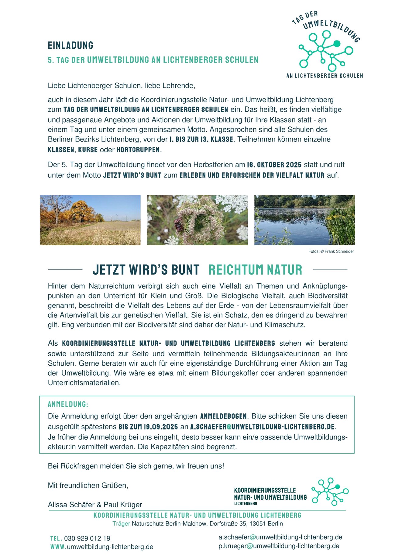 a.schaefer@umweltbildung-lichtenberg.de gesendet werden. Den Anmeldebogen erhalten Sie nach Anfrage per Mail. |