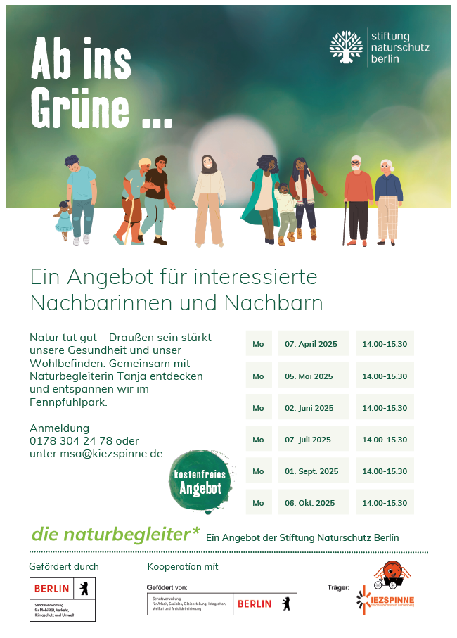 Dies ist ein Angebot der Stiftung Naturschutz Berlin in Kooperation mit dem Team Mobile Stadtteilarbeit Fennpfuhl (Kiezspinne FAS e.V.) |